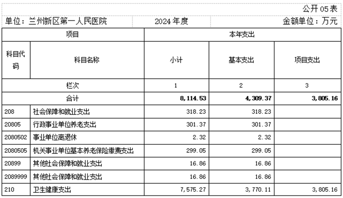 2024年度一般公共预算财政拨款支出8114.53万元,主要用于以下方面:社会保障和就业支出318.23万元,占3.92%;卫生健康支出7575.27万元,占93.35%;住房保障支出221.03万元,占2.72%。