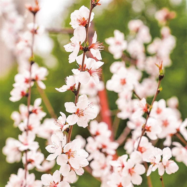 市民广场上桃花绚丽绽放。