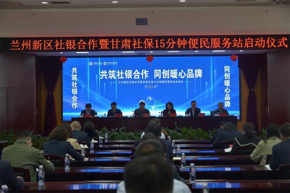 4月17日,兰州新区社银合作暨“甘肃社保15分钟便民服务站”启动仪式在中国农业银行新区支行举行。新区党工委委员、管委会副主任孙敏,省社保中心副主任白丽出席并讲话。