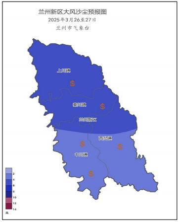 【摘要】受强冷空气影响,预计3月26至28日,新区将有寒潮、局地强寒潮并伴有大风沙尘天气。新区最高气温累计下降22℃,最低气温累计下降12℃,将出现寒潮。新区平均风力6~7级,阵风可达7~8级,并伴有浮尘或扬沙。由于前期气温较高,此次过程冷空气势力强,累计降温幅度大且持续时间长,并伴有大风沙尘等多灾种天气,需防范对空气质量、交通运输、城市运行、人体健康、能源保供、春耕春播及畜牧业等的不利影响;另外,近期新区白天气温较高,无有效降水,需做好森林防火工作。
