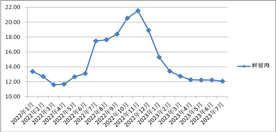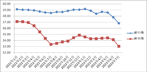 7月份,我省鲜猪肉、牛肉、羊肉、鸡肉平均零售价每500克分别为12.08元、36.81元、33.04元、14.94元,环比,鸡肉上涨0.95%,猪肉、牛肉、羊肉分别下降1.23%、2.62%、3.19%;同比,猪肉、牛肉、羊肉分别下降30.85%、4.39%、0.96%,鸡肉上涨3.39%。