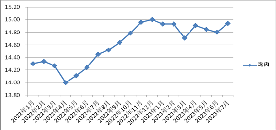 7月份鸡肉价格环比、同比均略涨,其余品种均下降