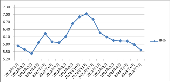 7月份,我省鸡蛋平均零售价为5.57元/500克,环比下降3.80%;同比,下降5.11%。