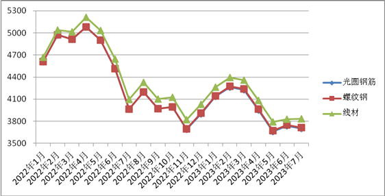7月份,我省圆钢、螺纹钢、线材、硅铁出厂价格每吨分别为3705元、3715元、3835元、6700元,环比分别下降0.94%、0.93%、0.90%、1.47%;与去年同期相比,圆钢、螺纹钢、线材、硅铁分别下降6.56%、6.31%、6.35%、12.13%。