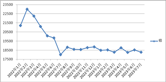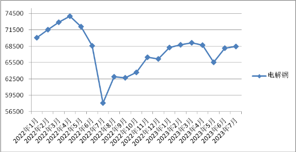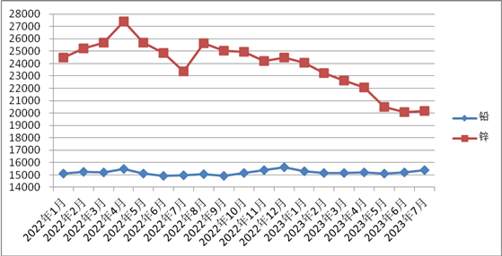 7月份我省五种有色金属出厂价分别为电解铜68460元/吨、铝18275元/吨、镍173250元/吨、铅15375元/吨、锌20150元/吨,环比,电解铜、镍、铅、锌分别上涨0.47%、1.76%、1.15%、0.45%,铝下降1.32%;同比,电解铜、铝、铅分别上涨17.84%、1.47%、2.84%,镍、锌分别下降5.59%、13.78%。