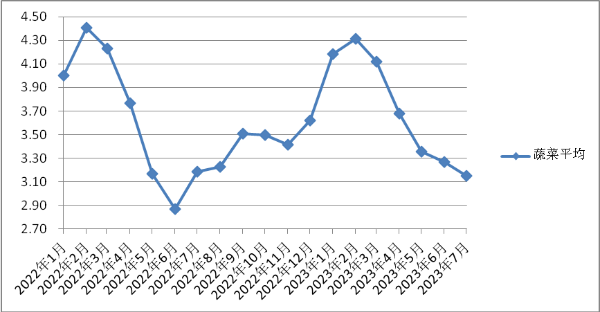 18种主销蔬菜平均零售价格每500克为3.15元,环比下降3.67%,同比下降0.94%。