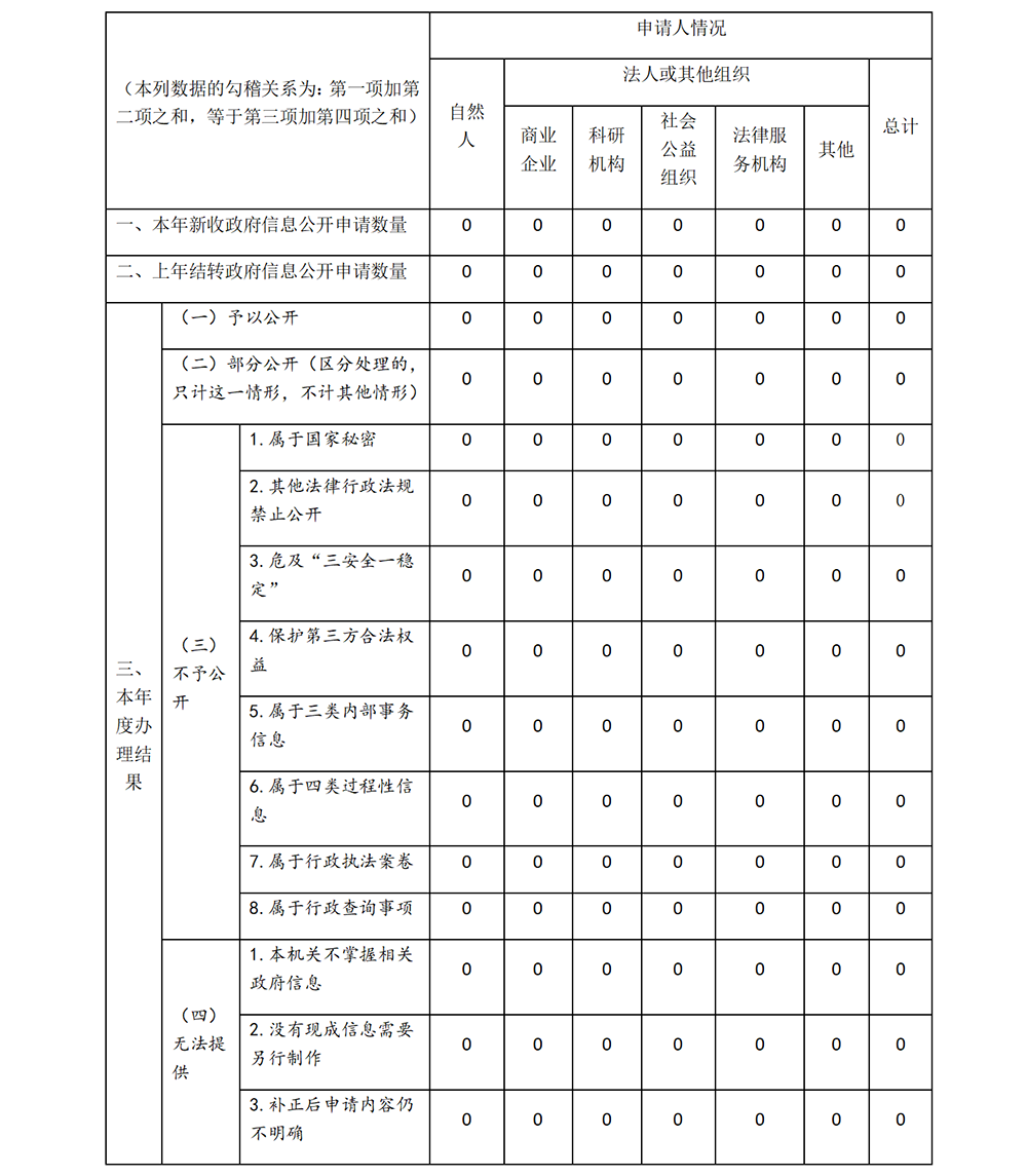三、收到和处理政府信息公开申请情况
