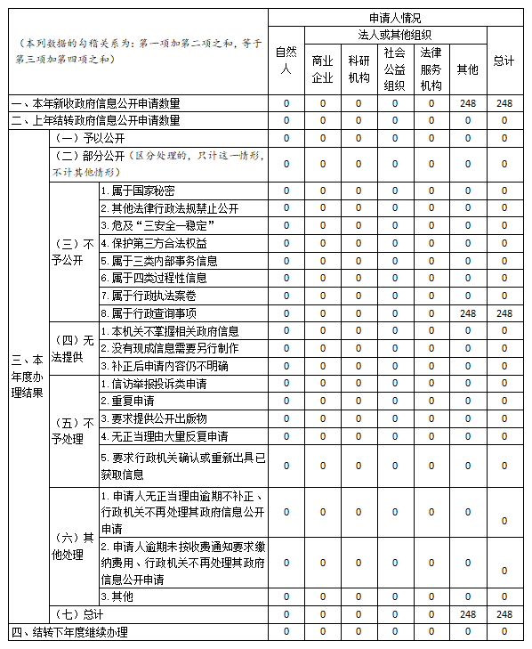 三、收到和处理政府信息公开申请情况