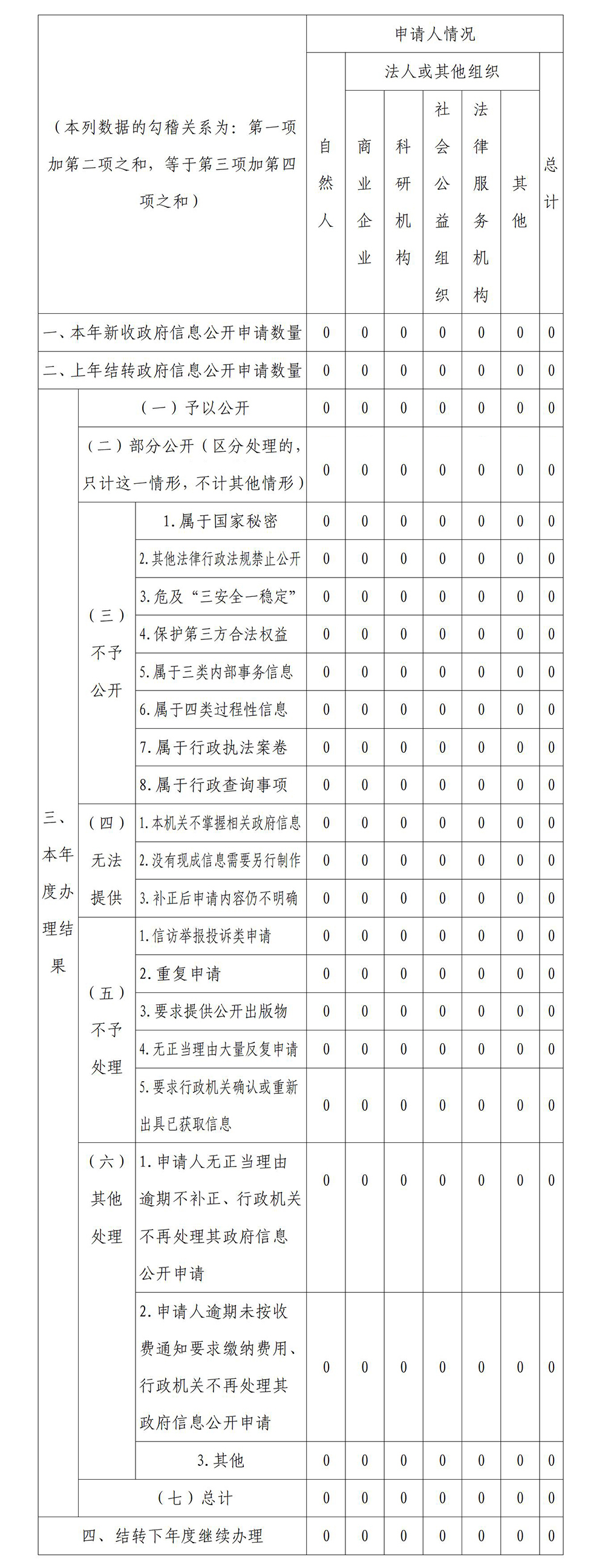 截至2021年12月31日,我局收到和处理政府信息公开申请0件。