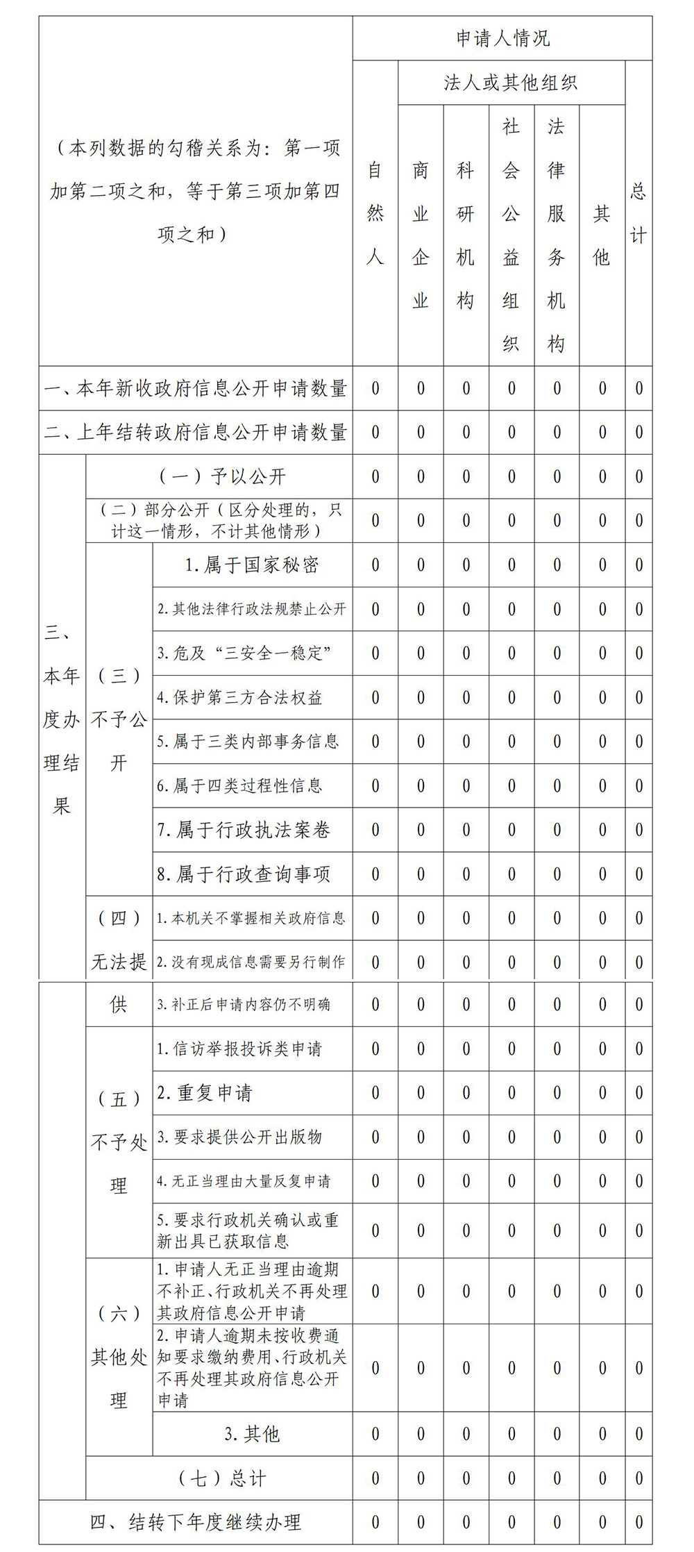 三、收到和处理政府信息公开申请情况