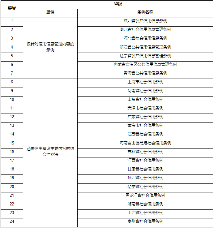 地方信用立法始于2011年《陕西省公共信用信息条例》,2017年,上海市在全国范围内首创《上海市社会信用条例》,实现全国综合性信用立法“从零到有”的突破,为后来全国各地实施信用立法提供法律框架、基本内容、核心条款等有益借鉴,具有很强的现实意义。截至2023年1月,已有36个省(区、市)、地级市出台信用地方性法规,并有部分省份已进入人大立法程序,地方信用立法已然成为各地社会信用体系建设高质量发展的重点工程。