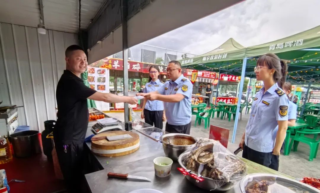 近期,新区“夜经济”持续升温,热闹的夜市上,美味的食物,勾勒出别有滋味的烟火气。为保障夜市食品安全,中川园区市场监督管理局彩虹市场监管所多措并举加强监管,全力守护群众“舌尖上的安全”。