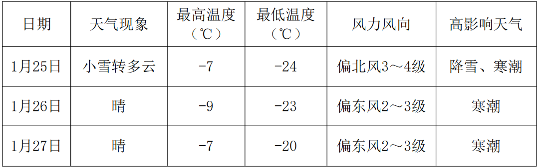 预计1月25日白天至26日上午,继续受冷空气影响,兰州新区有寒潮天气过程,气温下降明显;26日下午,新区转为西北气流影响,天气晴;27至29日,受偏西气流影响,新区天气以晴为主。