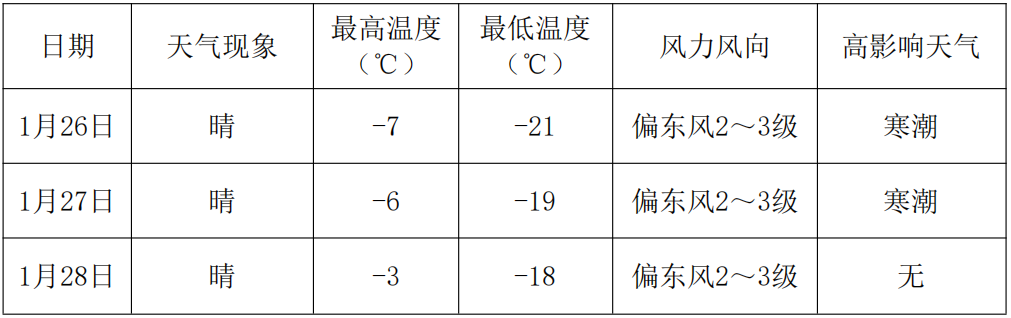 昨日新区天气小雪转多云,最低气温(截至08时):-21.8℃。