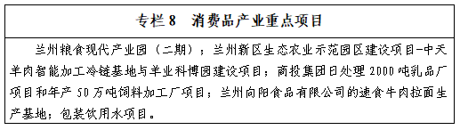 食品粮食加工业。依托航空口岸和铁路口岸等开放平台,围绕东方航空、汉莎航空、宝新生物科技、金桥玫瑰、紫金大厨房等企业,发展食品包装、真空包装、食品加工等产业。依托中天羊业、天兆猪业、天欣养殖、兰牧工商、海大饲料、大北农、高金食品、益海嘉里等项目,发展屠宰加工、饲料加工、农副产品加工等产业,形成种养加融合发展的食品及其他农副产品加工产业新格局。推动特色酿造业与文旅产业深度融合,培育自主品牌,开发多元化产品。依托金河池、青啤等企业,培育特色陇酒品牌,发展壮大酒类及饮料制造产业。