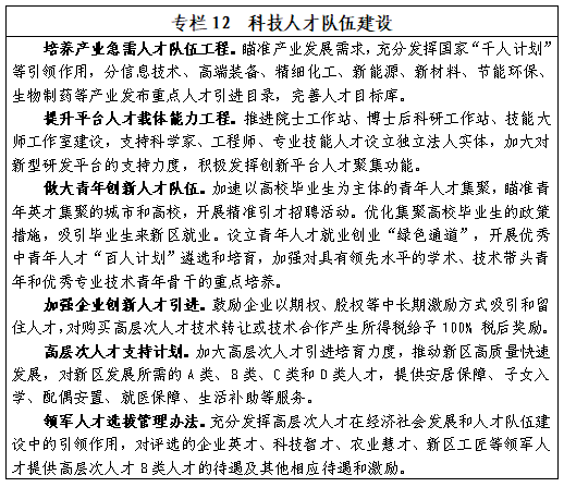二、引进高端人才和创新团队。鼓励省内外高校、科研院所和国有企业的科技人才及退休人员按有关规定在新区兼职兼薪、按劳取酬。对高层次和急需紧缺的人才、“特殊人才”采取“一事一议”方式试行年薪制、协议工资制度。广泛采用顾问指导、短期兼职、联合攻关、候鸟服务、设立离岸人才创新创业基地等模式,加大对高端人才的组团化招引。统筹推进各级院士工作站、重点实验室、海智基地、海内外高层次人才创新创业基地、博士后科研工作站建设,打造优质的研发平台吸引人才,壮大高水平工程师和高技能人才队伍。鼓励各类领军人才参与人才引进,定期举办“赢在新区”高层次人才创新创业大赛。