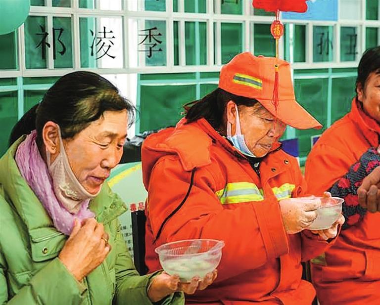 中川镇北坪村、倒水塘村联合祥和景苑社区开展了“党建聚力献爱心 元宵情暖环卫人”活动。党员志愿者热情地将一碗碗热乎乎的汤圆送到环卫工人手中,对他们的辛苦付出表示感谢,并叮嘱他们注意防寒保暖,保重身体。“最近气温降了好多,扫起地还有点冻手哟!”环卫工人完成当天第一次大普扫工作任务后围坐在一起,吃着汤圆,聊着天,每个人脸上都洋溢着节日的喜悦。