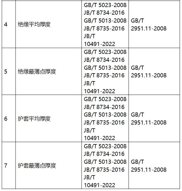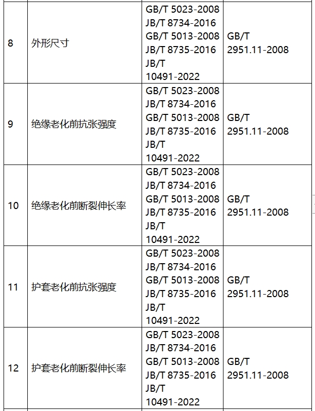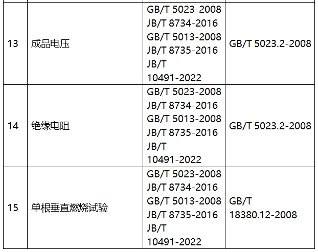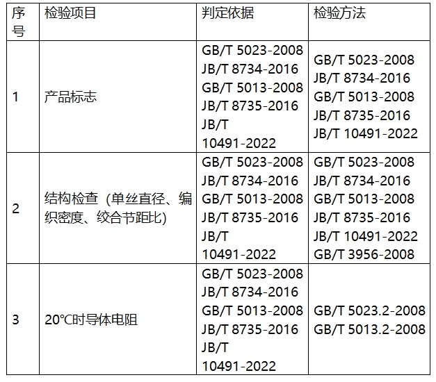 表1电线电缆检验项目