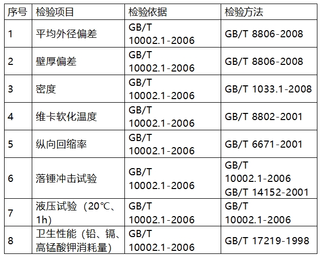 表3 给水用硬聚氯乙烯(pvc-u)管材