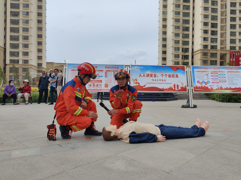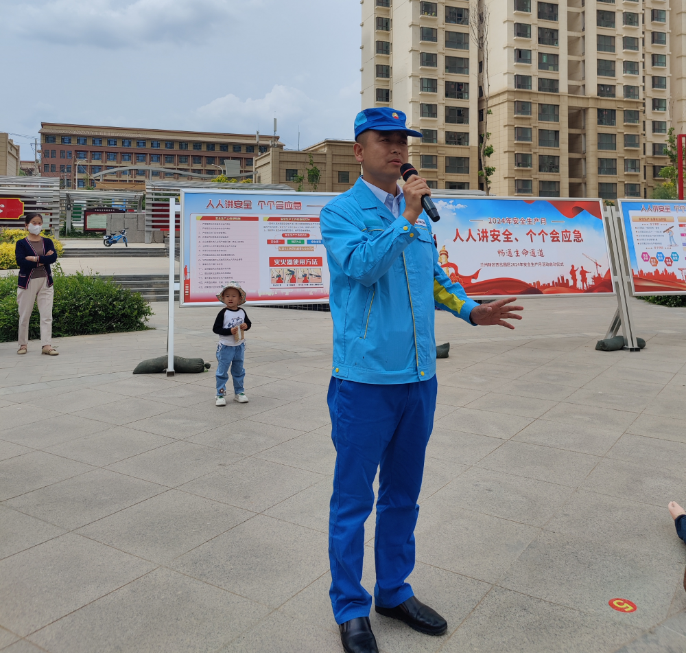 6月3日,西岔园区应急管理局组织开展2024年安全生产月活动启动仪式。辖区重点企业、在建项目及交通运输企业、餐饮酒店经营单位、网格员及居民群众共计200余人参加活动。