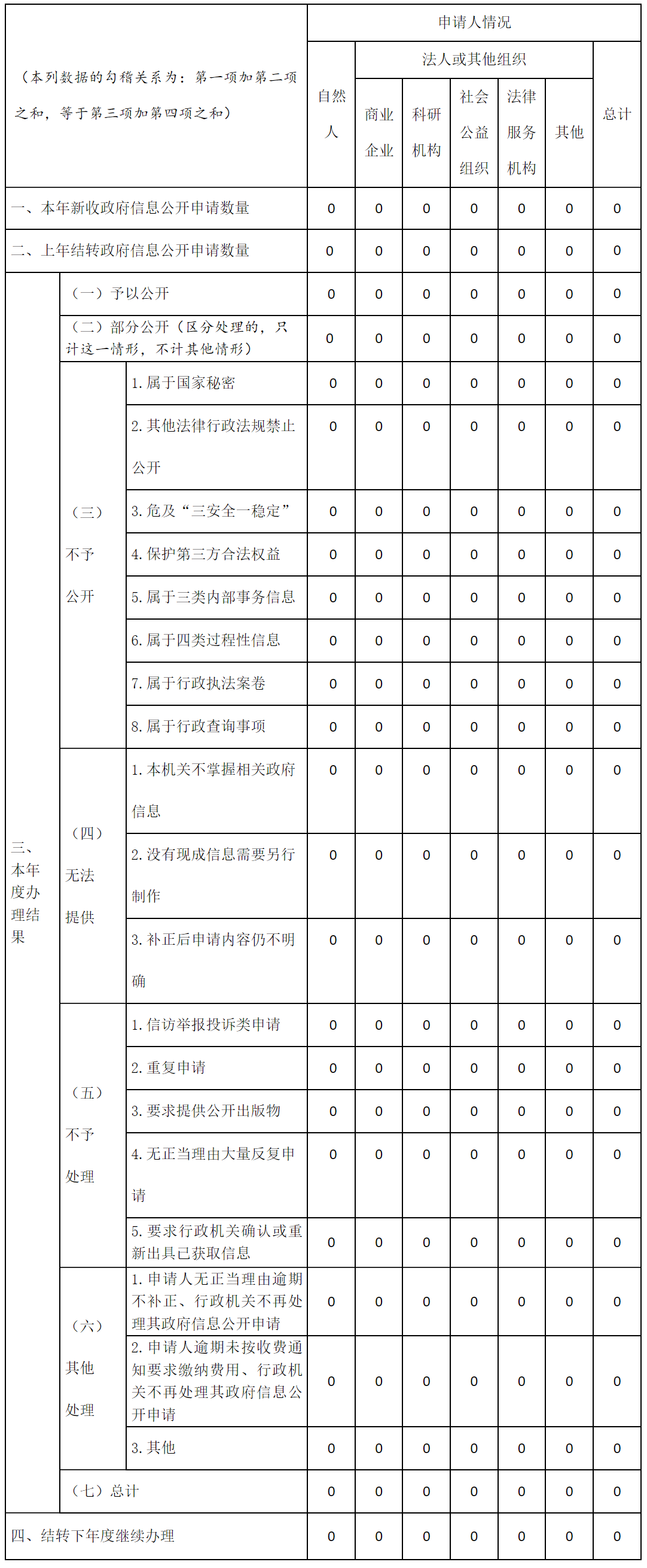 三、收到和处理政府信息公开申请情况