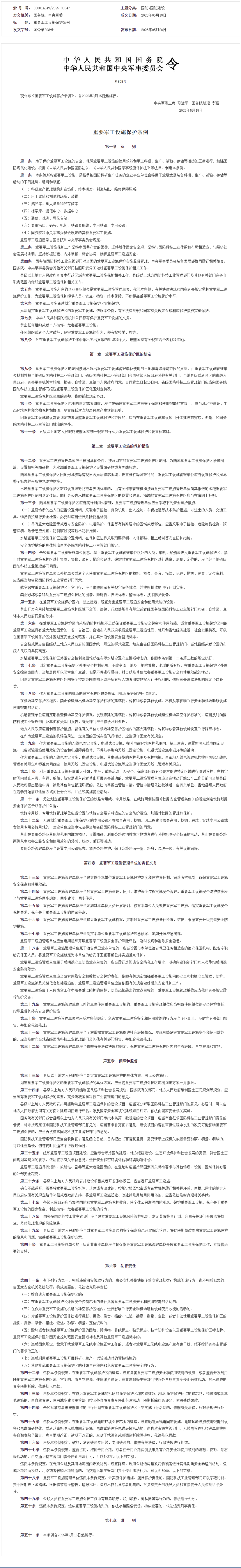 重要军工设施保护条例(全文)