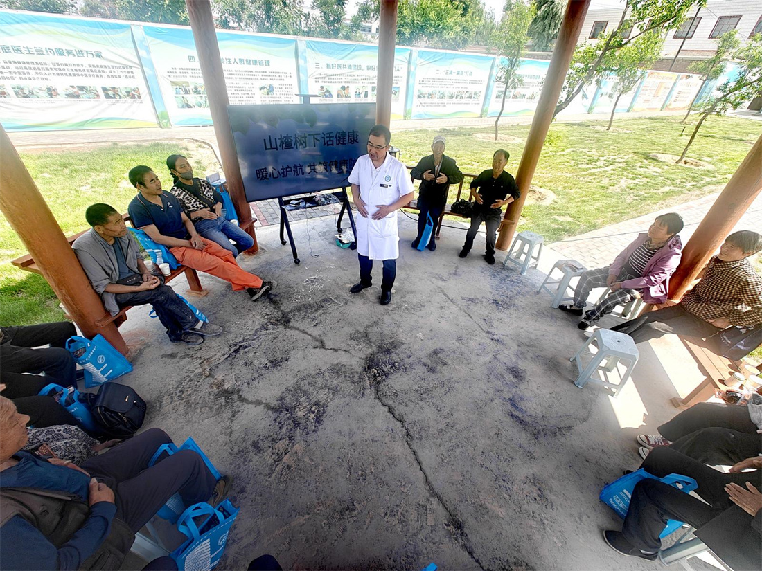 “春吃芽、夏吃瓜,秋果冬根有讲究。”中医科何国玲医生的讲座宛如一幅生动的健康四季图。结合本地春燥夏湿的气候特点,她将《黄帝内经》的养生智慧化作“少盐多醋巧控压”“五禽戏降压六式”等实用口诀。当讲到“山楂陈皮代茶饮可辅助降脂”时,现场老人纷纷举起手机记录——这棵见证活动的老山楂树,此刻成了最鲜活的教具。