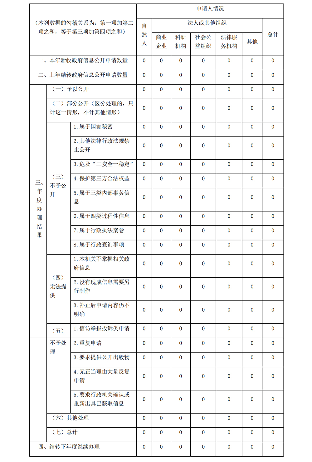 截至2020年12月31日止,我局收到和处理政府信息公开申请0件。