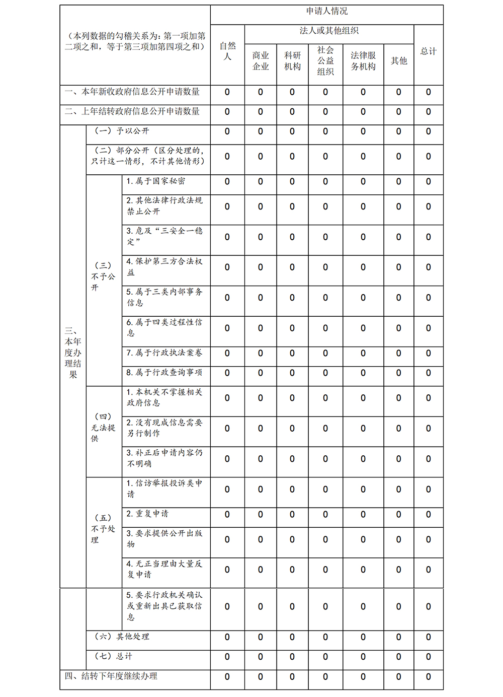 三、收到和处理政府信息公开申请情况