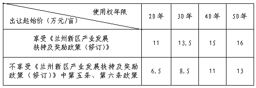 第七条 入驻产业园的企业可自主选择是否享受《兰州新区产业发展扶持及奖励政策(修订)》中第五条、第六条关于投资奖励的优惠政策,选择不同供地价格,按下表执行。