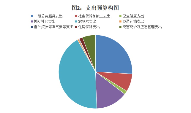 2024年一般公共预算当年支出3373.14万元,包括:一般公共服务支出874.73万元、社会保障和就业支出265.14万元、卫生健康支出53.84万元、城乡社区支出472.22万元、农林水支出1432.61万元、交通运输支出20万元、自然资源海洋气象等支出10万元、住房保障支出50.74万元、灾害防治及应急管理支出193.86万元。具体安排情况如下(单位预算公开表4,5,6,7):