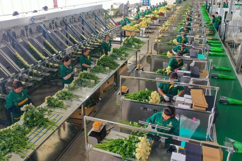 花卉产业是集经济、社会、生态三大效益于一体的绿色产业。随着经济社会的发展,人们对花草需求日渐强烈,让花卉产业成为了朝阳产业。新区花卉产业基地采用世界一流的智能温室建设技术,集成荷兰铝合金天沟技术、水循环及灌溉系统、自动控制系统等先进设施设备,可实现精准环控,精准灌溉,精准施肥,精准采摘,全天候生产30余种高端 鲜切玫瑰品种,科技赋能花卉种植。