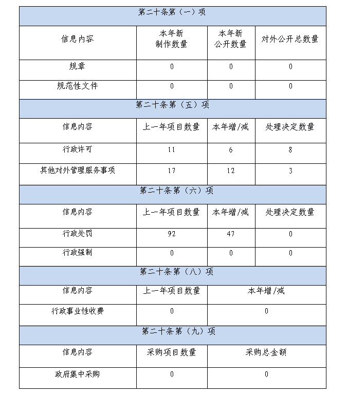 2020年,兰州新区商务和文化旅游局坚持以公开为常态、不公开为例外,积极主动公开各类政府信息。全年通过甘肃政务服务网公示行政许可事项28项,微信公众号发布信息413条、浏览量95189次,今日头条发布信息347条、浏览量181994次。印发规范性文件1个,不宜公开。
