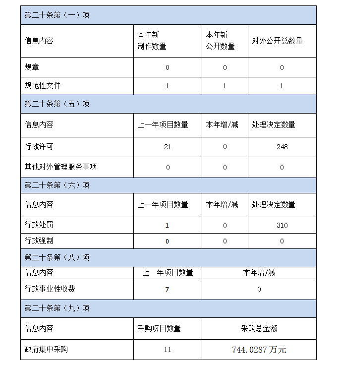 (一)主动公开政务信息情况。一是主动公开信息总数。2020年,全年主动公开政府信息6条,其中,政府网站公开政府信息5条,政策法规类1条。实现了重点内容及时更新、阶段性工作内容定期更新的信息公开要求。二是主动公开信息分类。今年以来,新区公安新媒体矩阵共发布信息3088条,日均发布各类信息9条,总阅读量1647.34万次,微信、微博、头条、抖音四大平台聚合关注人数21万人宣传覆盖面持续扩大。三是重点公开内容。机构信息公开了我局各部门职能,局党委成员及部门主要领导职务、姓名、简历、分工等相关内容。