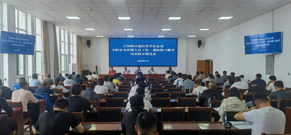 为保障辖区危险化学品企业从业人员的生命财产安全,科学预防和减少工伤事故发生,积极推动用人单位开展危险化学品企业工伤预防能力提升培训,切实提升危险化学品企业安全发展水平,7月24日由兰州新区应急管理局、兰州新区应急管理局秦川分局、兰州新区化工园区管理委员会主办,兰州新区化工园区精细化工行业协会、兰州新区石化人力资源培训有限公司承办的兰州新区危险化学品企业专职安全管理人员工伤预防能力提升培训正式开班。本次培训组织化工园区75家危险化学品企业共计121名危险化学品企业专职安全管理人员参加培训。