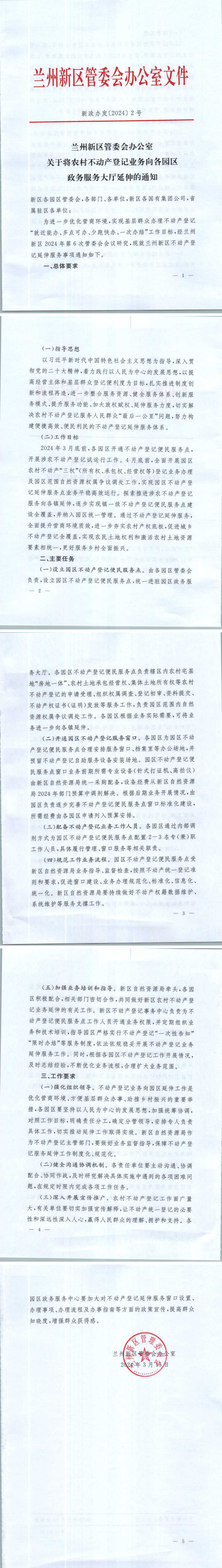 兰州新区管委会办公室关于将农村不动产登记业务向各园区政务服务大厅延伸的通知-捕鱼网