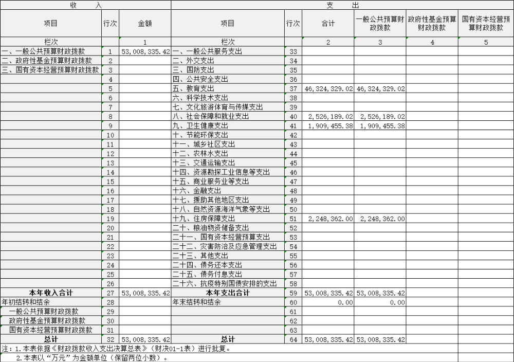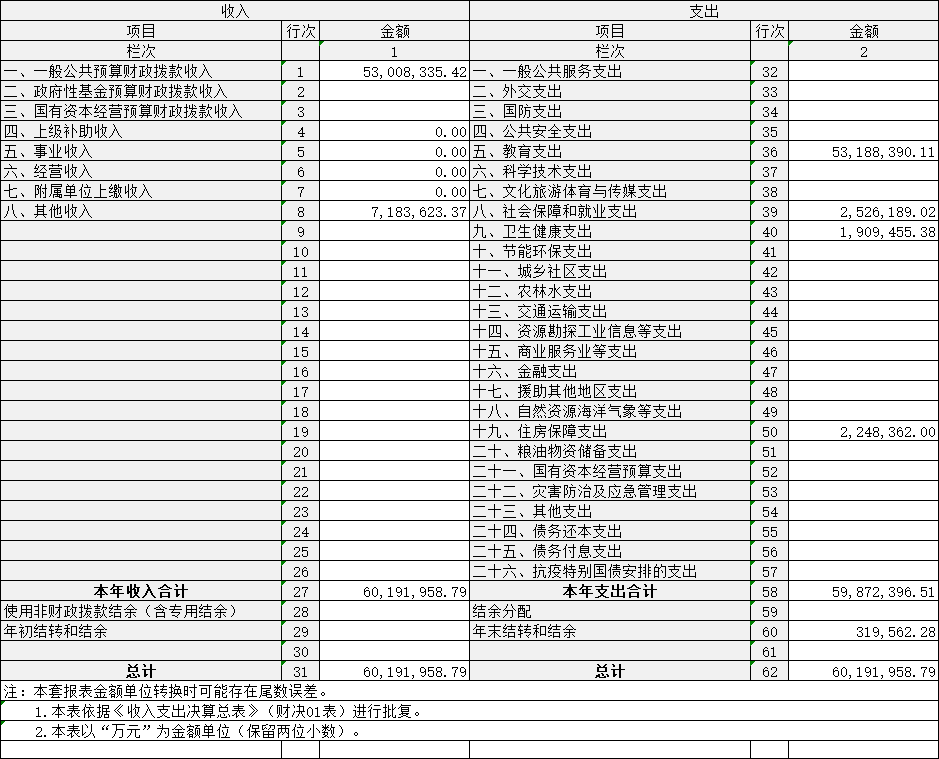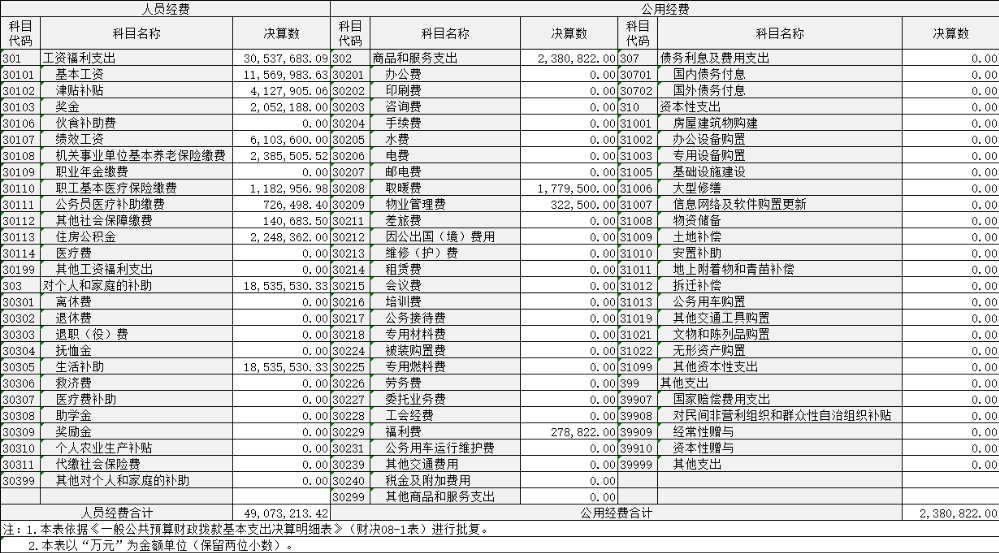 由于决算公开表格中金额数值应当保留两位小数,公开数据为四舍五入计算结果,个别数据合计项与分项之和存在小数点后差额,特此说明。