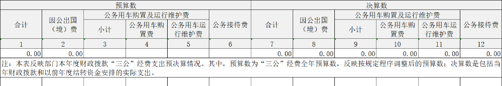 2.公务用车购置及运行维护费全年预算数为0.00万元,支出决算为0.00万元,预算数等于决算数,较上年决算数减少0.00万元,下降0%。