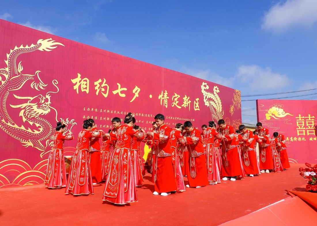 2025年“相约七夕·情定新区”集体婚礼与颁证仪式于8月29日在兰州新区中川·青云驿举行。