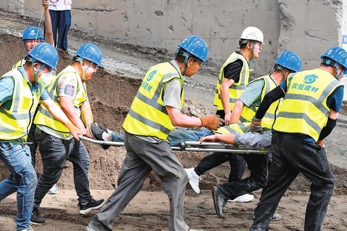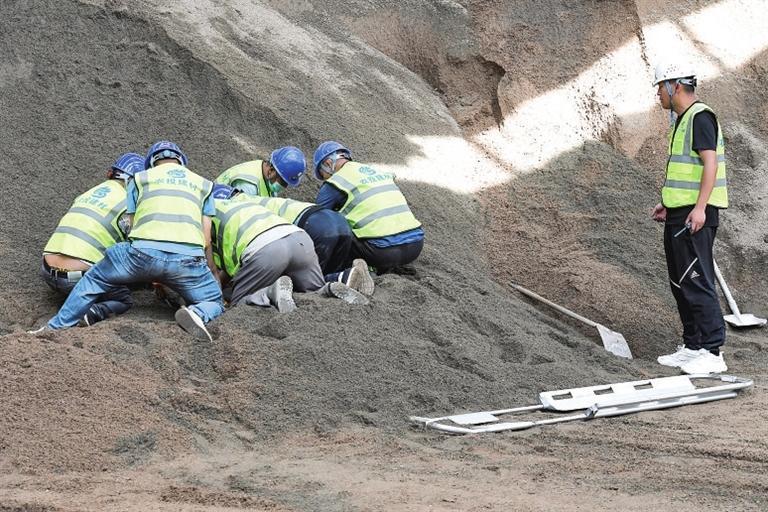 此次演练模拟某商砼站发生人员触电事故、砂土掩埋事故、生产厂房出现火情引发火灾危及安全的场景。应急救援领导小组赶到事故现场,根据受伤人员情形采取现场急救。新区应急管理局、新区消防救援支队组织相关力量进行应急救援和事故处置。