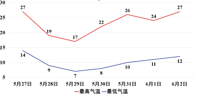 5.前期气温相对较高,28至29日气温降幅较大,提请公众关注气象信息、注意天气变化、合理安排出行,适时增减衣物,谨防感冒。