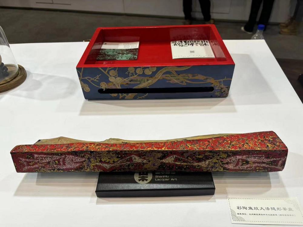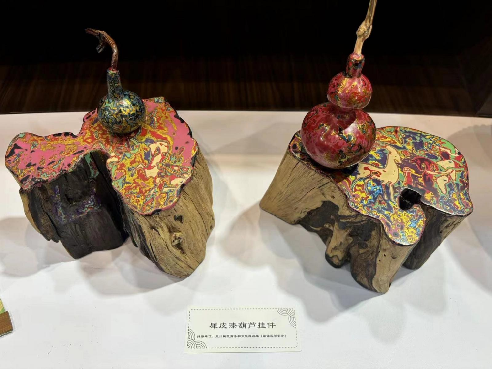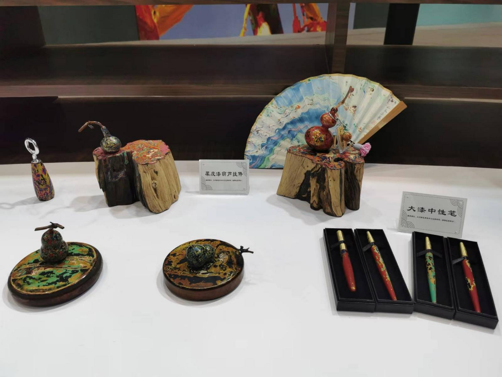 兰州新区太平鼓、蛋雕、锔瓷、大漆犀皮工艺4类20余件非遗文创精品入选参展。其中,飞天箜篌瓶、饕餮龙纹盏、侧把柴烧紫砂壶、原创正反两用大漆方盘、大漆中性笔、犀皮漆葫芦挂件等文创精品系首次推出。