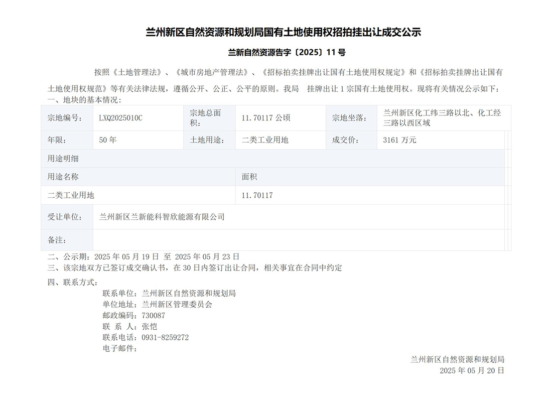 兰州新区自然资源和规划局国有土地使用权招拍挂出让成交公示
