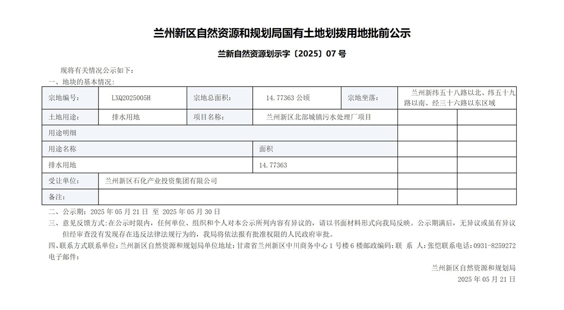 兰州新区自然资源和规划局国有土地划拨用地批前公示-捕鱼网