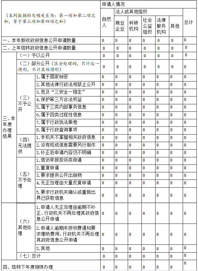 三、收到和处理政府信息公开申请情况