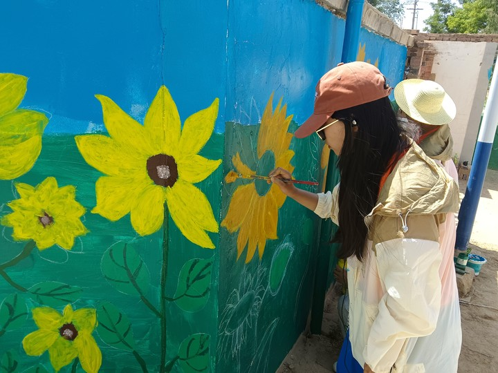 近日,走进西岔镇岘子村,来自兰州信息科技学院的2名青年教师、15位学生,不惧烈日骄阳,充分发挥丰富的想象力和创造力,正在开展和美乡村主题墙绘活动。他们分工合作,起形、打底稿、上色、勾勒线条、填涂色彩,在他们精心绘制下,一幅幅构思巧妙、通俗易懂的墙绘作品跃然墙上。