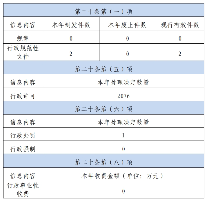 2023年主动公开信息2528条,其中重大民生信息41条,占1.62%;行政许可与行政处罚信息2078条,占82.2%;其他信息409条,占16.18%。