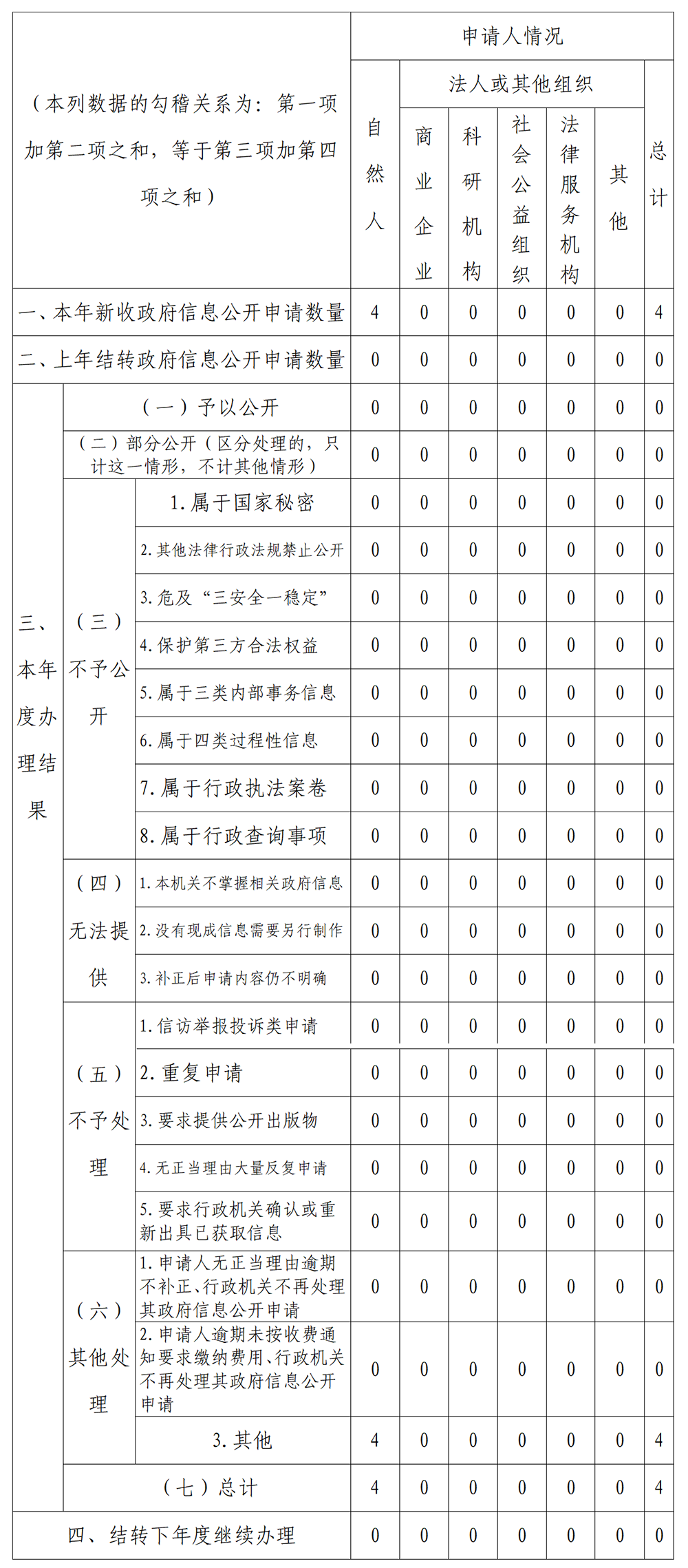 三、收到和处理政府信息公开申请情况