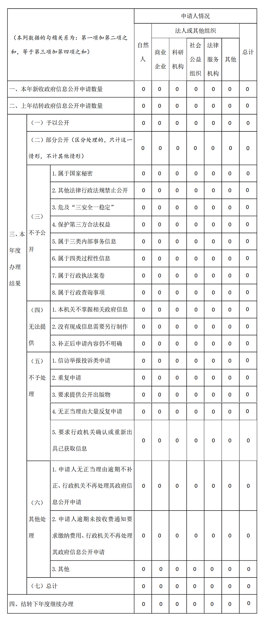 三、收到和处理政府信息公开申请情况