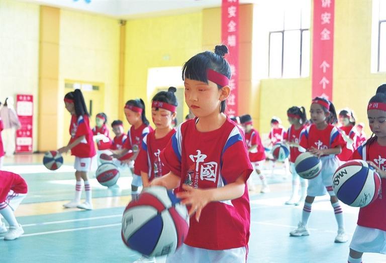 手持篮球,动作熟练,身姿矫健,随着音乐的节奏快速移动,新区第一幼儿园的孩子们完成了一系列精准的拍球、运球和防守动作。“今年的庆‘六一’活动以团体操和亲子游戏为主要内容,既展示了孩子们的活力与团结,也为家长和孩子提供了亲密互动的机会。”新区第一幼儿园园长赵晓红说。
